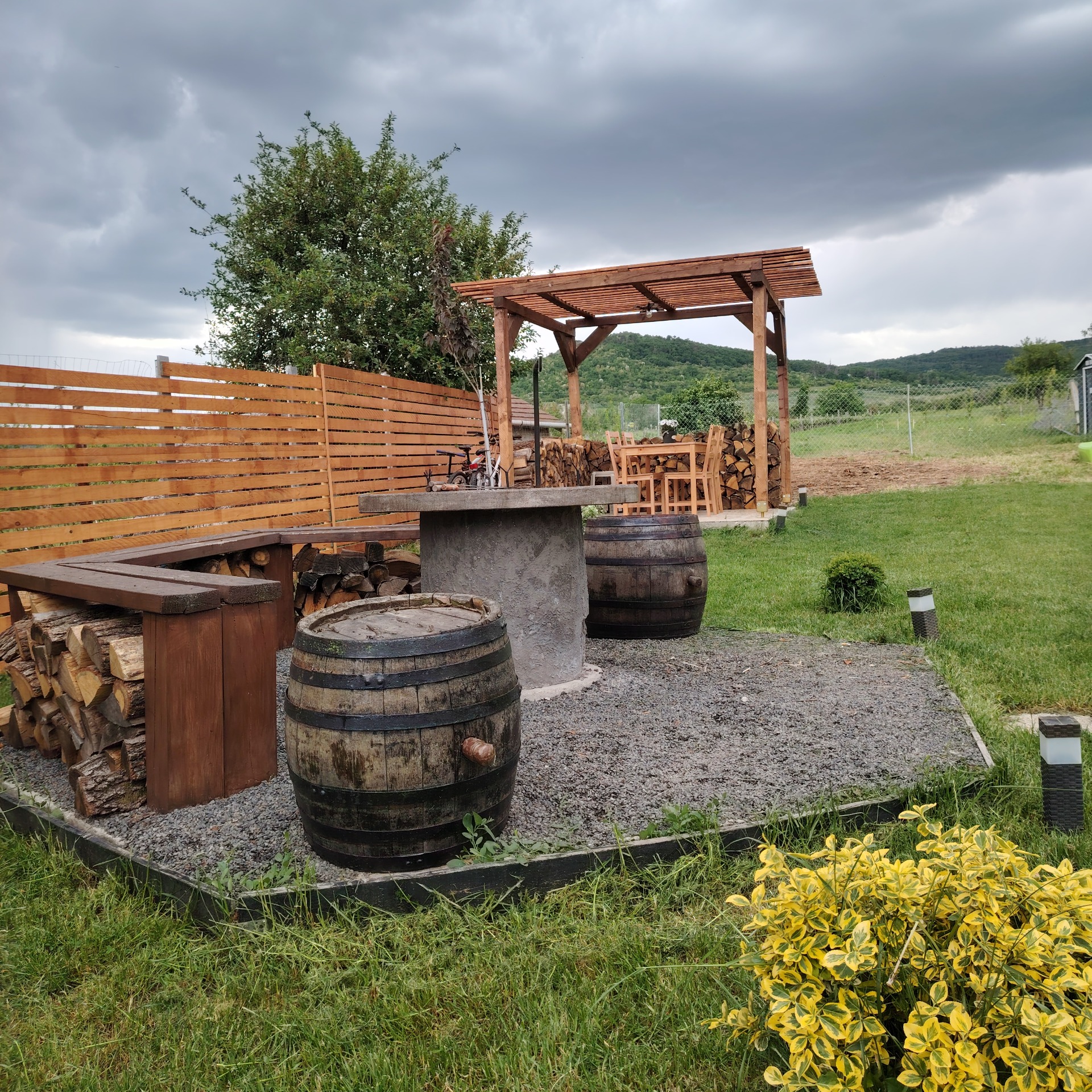 Kerti bográcsozó minden felszereléssel,bogrács, nyárs, grill rács. Tüzifát ingyenesen biztosítunk.